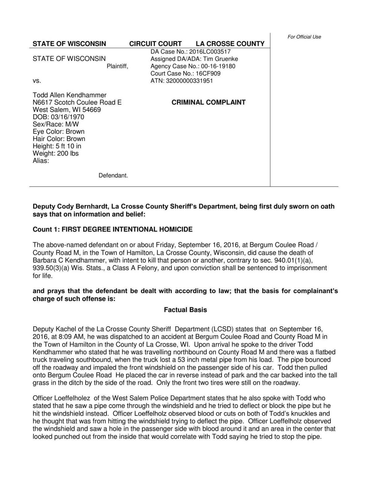 Pdf Criminal Complaint Against Todd Kendhammer Lacrossetribune Com